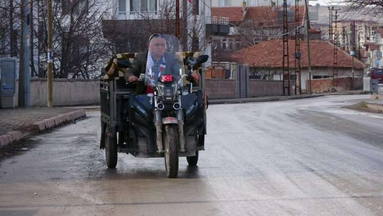 Suudi Arabistan'da 29 yıl önce çalıştığı inşaatın 8'inci katından düşerek engelli kalan Mehmet Taşçı, memleketi Yozgat'ın Sorgun ilçesinde hayırseverlerin ve fırıncıların katkısıyla aldığı ekmek başta olmak üzere temel ihtiyaç malzemelerini 3 tekerli engelli aracıyla ihtiyaç sahiplerine ulaştırıyor.