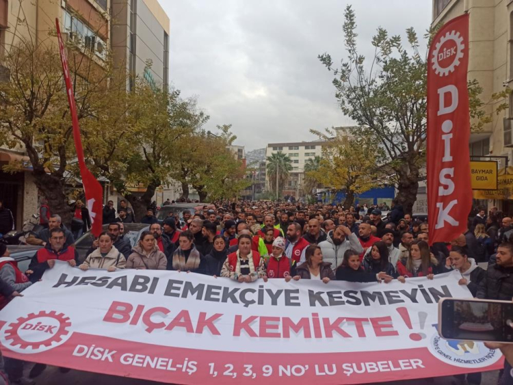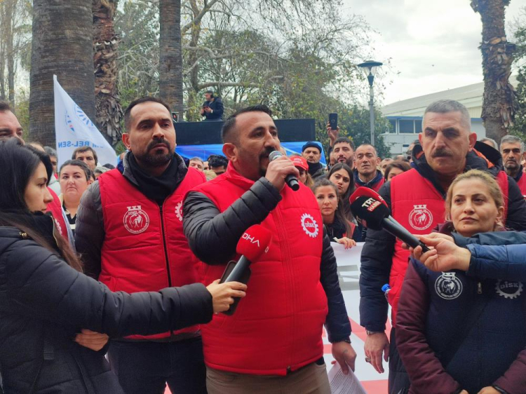 DİSK Ege Bölge Temsilcisi Memiş Sarı, “İzmir Büyükşehir Belediyesinin kamuoyuna açıkladığı üzere, yalnızca 31 Aralık 2024 tarihinde hesaplarına yatması beklenen 3 Milyar 713 milyon TL Maliye Payı’ndan 1 milyar 573 milyon TL’lik bir kesinti yapılacağı belirtilmiştir. Hazine ve Maliye Bakanlığı’nın bu tutarı 'emanet hesabında' tutma kararı, işçilerin alın terine dayalı hizmetlerin aksamasına ve hak edilen ücretlerin ödenmesinde gecikmelere yol açmaktadır. Üstelik bu süreç, eski belediye yönetiminin bıraktığı borçlar gibi yüklerin de emekçilere ödetilmesi anlamına gelmektedir. Bu adaletsizlik kabul edilemez. Bir kez daha hatırlatıyoruz. İşçilerin ücretleri ve alın teri üzerinden yürütülen hiçbir maliye politikası meşruiyet taşımamaktadır. Belediyeler, bütçelerini işçilerin haklarını gözeterek yeniden planlamalı ve emekçilerin ücretlerini eksiksiz ve zamanında ödeyebilmek için acil çözümler üretmelidir. Emekçilerin haklarını gasp eden bu politikalara karşı duracak, emeğin onurunu savunmaya devam edeceğiz” ifadelerini kullandı.