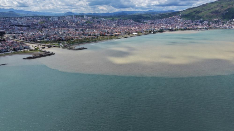 Ordu'da etkili olan yağışların ardından, yüksek kesimlerden ırmaklarla Karadeniz'e dökülen çamurlu sular nedeniyle deniz yüzeyinin rengi değişti.