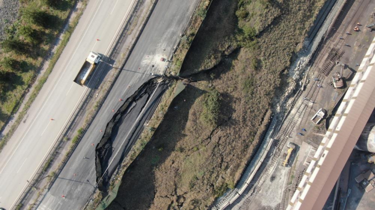 Karayolunun tamamen kapanması sonucu Karayolları ekipleri bölgede önlemlerini artırarak, çalışmalara başlarken, yaşanan çökme ve heyelanın meydana geldiği bölge ise dron ile görüntülendi.