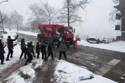 Kocaeli'de karın temizlenmesini istemeyen çocuklar, kar topu ile kar küreme aracına saldırdı. Miniklerin isteği geri çevrilmezken o anlar cep telefonu kamerasına yansıdı.