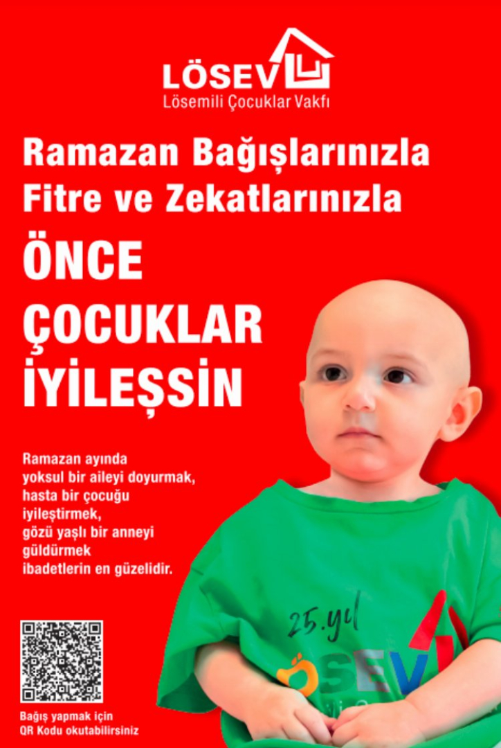 LÖSEV, Lösemili Çocuklar Sağlık ve Eğitim Vakfı dayanışmanın en yoğun yaşandığı Ramazan Ayında fitre, fidye ve zekât bağışlarını lösemi ve kanserle mücadele eden çocuklara ulaştırıyor.