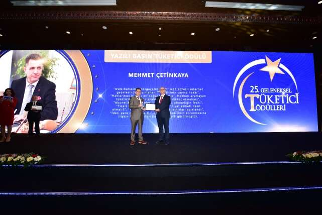 . Bakanlığın geleneksel hale getirdiği Tüketici Ödülleri'nde 2005 ve 2018 yıllarında da ödüle layık görülen Bursa İnternet Gazetesi (www.bursainternetgazetesi.com) sahibi Mehmet Çetinkaya, üçüncü kez ödül aldı. 25. Geleneksel Tüketici Ödülleri sahiplerini buldu. Bu yıl düzenlenen 25. Geleneksel Tüketici Ödülleri töreninde, Bursa İnternet Gazetesi sahibi ve Köşe Yazarı Mehmet Çetinkaya, ‘Yazılı Basın Tüketici Ödülü’ dalında ödüle layık görüldü. Ticaret Bakanı Yardımcısı Sezai Uçarmak'ın da hazır bulunduğu ödül töreni Ankara'da gerçekleştirildi. Tüketici kanunlarında günün şartlarına göre bazı değişiklikler yapılma ihtiyacı olduğunu belirten Uçarmak, Tüketici Hakem Heyetleri'nin isabetli kararlar verdiğine değinerek, "Son yıllarda tüketici lehine verilen kararların mahkemelerde onanması yüzde 98 gibi oldukça yüksek bir oranda gerçekleşiyor. Bu sonuç heyetlerin iyi çalıştığının göstergesi" dedi. Daha sonra törenle bu yılın ödülleri sahiplerine verildi. 2021 Yazılı Basın Tüketici Ödülü, www.bursainternetgazetesi.com adlı internet gazetesinde yayınlanan köşe yazıları ile Mehmet Çetinkaya layık görüldü. Bakanlığın 2008 ve 2015 yıllarında da ödülüne layık görülen Çetinkaya, bu yıl ki ödülünü Ticaret Bakanlığı, Tüketicinin Korunması ve Piyasa Gözetimi Genel Müdürü Avni Dilber’in elinden aldı. Tüketicinin Korunması ve Piyasa Gözetimi Genel Müdürü Avni Dilber