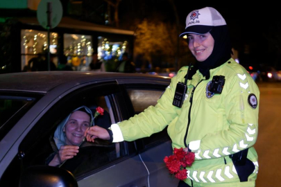 Polis, denetim noktasında kadın sürücülere karanfil hediye etti