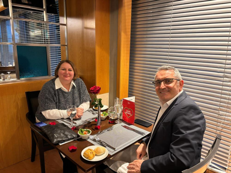 Kurumsal İletişim Direktörlüğü tarafından çalışanların Sevgililer Günü’nü özel kılmak amacıyla planlanan etkinlik kapsamında terminal çalışanları arasında bir çekiliş yapıldı. Çekilişi kazanan beş çalışan, eşleriyle birlikte 8 Şubat Cumartesi günü ISG Airport Hotel Blue Sky Restaurant’ta romantik bir akşam yemeğine davet edildi. Özel olarak hazırlanan menü ve restoranın sıcak atmosferi eşliğinde çiftler Sevgililer Günü’nü erkenden kutlama fırsatı buldu.