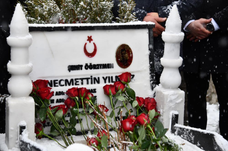Gümüşhaneli şehit öğretmen Necmettin Yılmaz, Öğretmenler Günü'nde Torul ilçesi Demirkapı köyünde bulunan kabri başında düzenlenen programla anıldı.