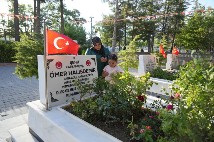 15 Temmuz hain darbe girişiminin 8'inci yıl dönümünde Kahraman Şehit Ömer Halisdemir'in Niğde'nin Çukurkuyu beldesindeki kabri ziyaretçi akınına uğruyor.