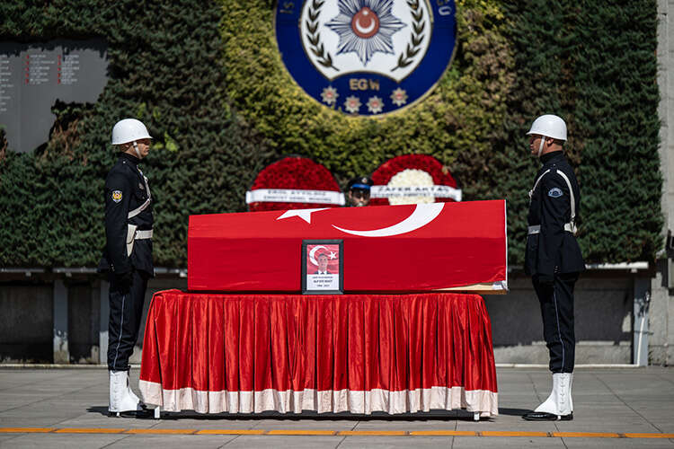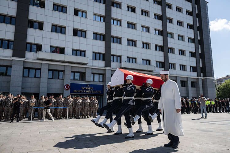 Kağıthane'de uygulama noktasında sürücüsünün "dur" ihtarına uymadığı motosikletin çarpması sonucu şehit olan polis memuru Alp Efe Bekit için İstanbul'da tören düzelendi.