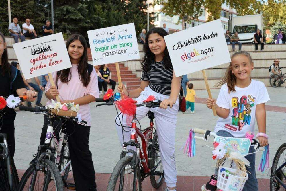 Konuşmanın ardından kentte bisikletlerle tur atıldı.