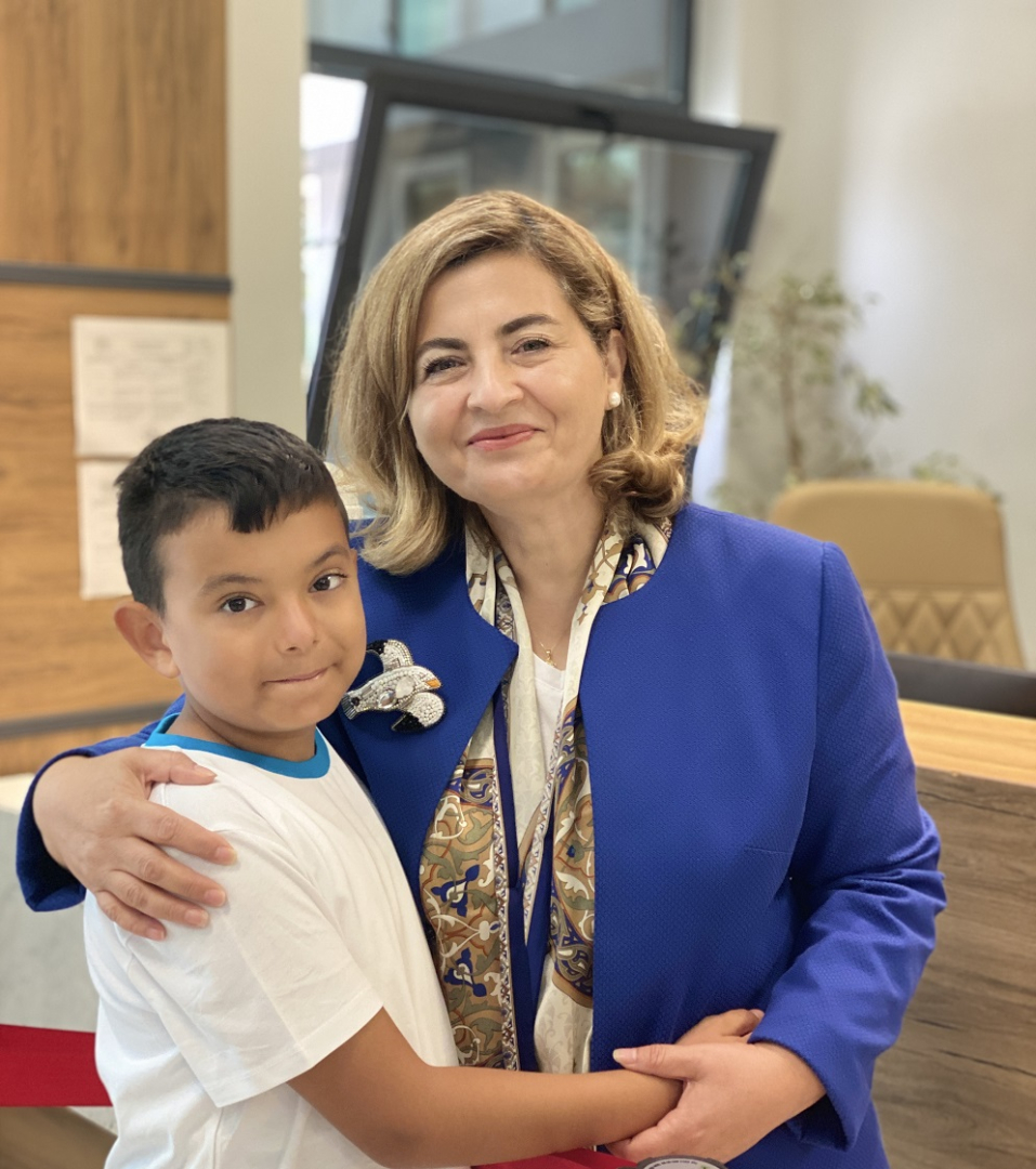Öte yandan törende 8.sınıf öğrencileri, okula yeni başlayan arkadaşlarına çiçek takdim ederek, onların heyecanlarına ortak oldu.