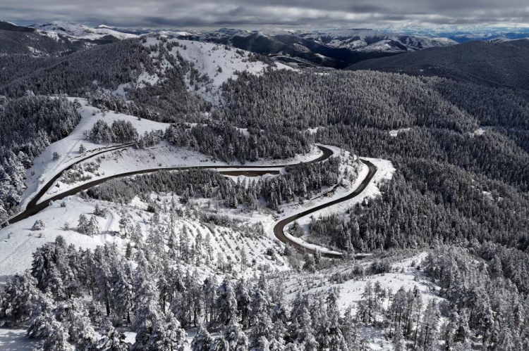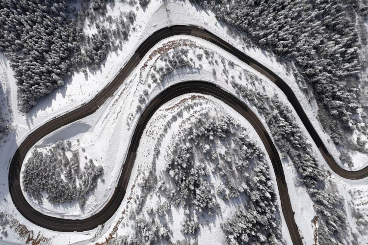 Gümüşhane-Şiran arasındaki en kısa güzergah olan 2 bin rakımlı Tersun Dağı Geçidi, etkili olan kar yağışının ardından kartpostallık görüntülere sahne oldu. Kıvrım kıvrım yolları ve dik rampalarıyla sürücülerin 'korkulu rüyası' olan geçitte, karın oluşturduğu eşsiz manzara havadan görüntülendi.