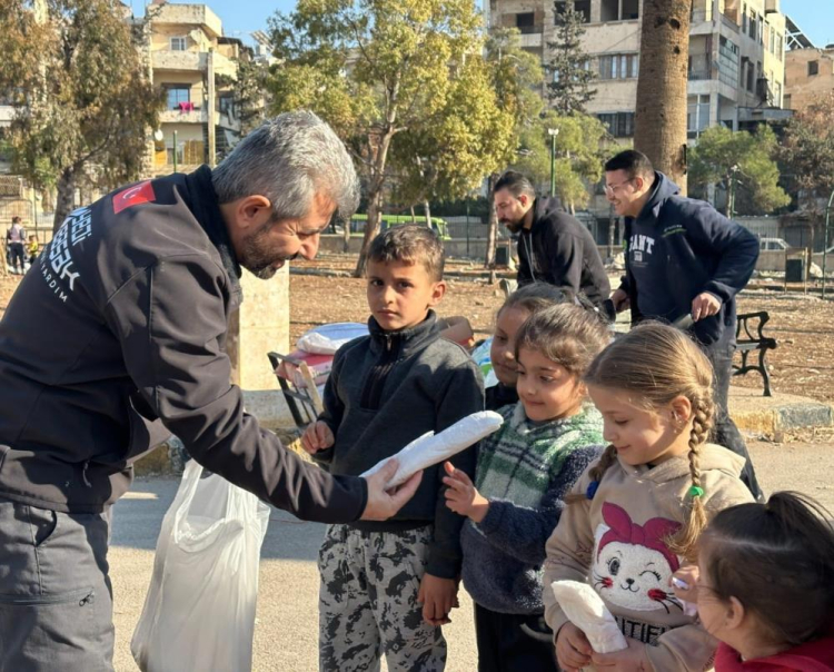 Türk yardım gönüllüleri Halep’te ekmek ve yemek dağıttı