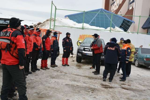 AFAD ve jandarma ekiplerinin arama köpeklerince iki farklı konumda kazazedelerin yerlerinin belirlenmesi üzerine, AFAD koordinesinde sivil toplum ve gönüllü arama kurtarma ekiplerinin yaralıları kar altından çıkarıp UMKE ekiplerine teslim etmesiyle tatbikat sonlandırıldı.