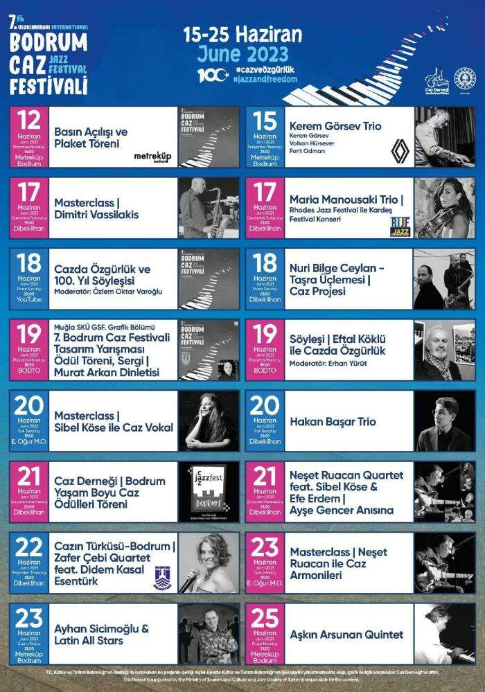 Kültür ve Turizm Bakanlığının desteğiyle Caz Derneği tarafından düzenlenen festivalin teması Cumhuriyetin 100. yılı anısına “Caz ve Özgürlük” olacak. Dibeklihan Kültür ve Sanat Köyü, Metreküp Bodrum ile Bodrum Ticaret Odası gibi mekanların ev sahipliği yapacağı festival 15-25 Haziran tarihleri arasında müzikseverleri ağırlayacak.