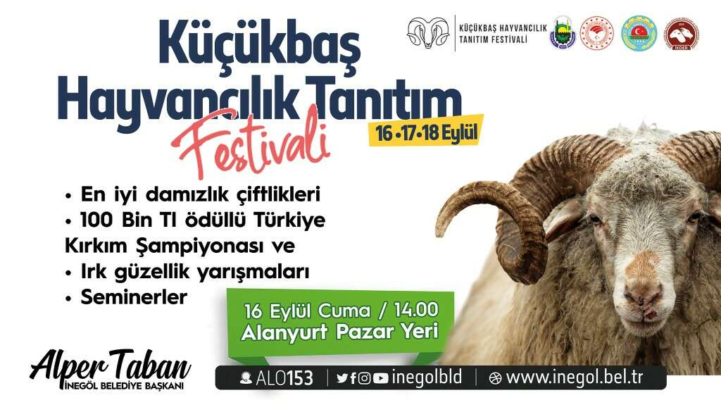İnegöl Belediyesi, şehrin önemli değerlerinden biri olan tarım ve hayvancılık alanında da önemli bir organizasyona hazırlanıyor. 16-17-18 Eylül tarihleri arasında 2. Küçükbaş Hayvancılık Tanıtım Festivali Alanyurt Salı Pazarında gerçekleştirilecek. İnegöl’ün hayvancılıktaki önemli değerlerinden biri olan İnegöl Kıvırcığının tanıtımının da yapılacağı festivalde; Türkiye’nin en kaliteli damızlık küçükbaş hayvan çiftliklerini ve üreticileri İnegöl’de bir araya gelecek. Küçükbaş hayvancılık mesleğini tanıtmak, Küçükbaş hayvancılık ile uğraşan firmaları, çobanları ve çiftlikleri ortak bir paydada buluşturmak ve Küçükbaş hayvan ırklarının uluslararası düzeyde tanıtılmasını hedefleyen organizasyon 16 Eylül Cuma günü yapılacak seminerlerle başlayacak. 11.00’da küçükbaş hayvancılıkta kapalı sistem, IPART – kırsal kalkınma ve sağlığı semineri yapılacak. 12.00’da da küçükbaş hayvancılıkta barına, son teknolojiler, ultrason ve sürü yönetimi semineri olacak. Cuma günü 14.00’da ise festival açılış programı ve stant ziyaretleri yapılacak. 16.00-17.00 saatleri arasında da küçükbaş hayvancılığın sorunları paneli yapılacak. 17 Eylül Cumartesi günü koyun ıslahı ve metavers seminerinin yapılacağı festivalde, daha sonra küçükbaş damızlık seçimi, kıvırcık ırkı ve embriyo transferleri semineri gerçekleştirilecek. Festivalin ikinci gününde Damızlık Koç Yarışması da yapılacak. 18 Eylül’de festivalin son gününde ise 11.00’da İnegöl Kırkım Şampiyonası gerçekleştirilecek.