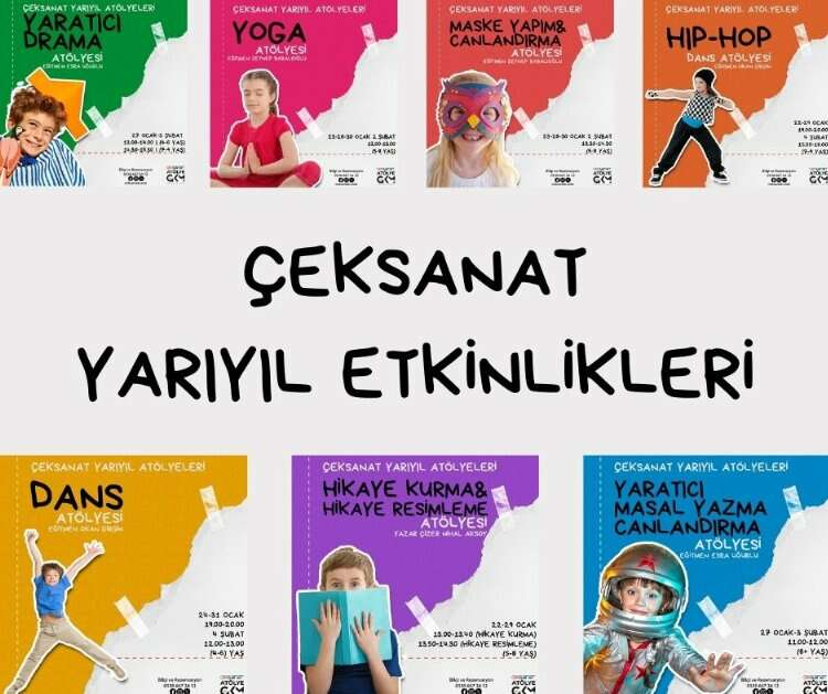 Kontenjan ile sınırlı atölyelere kayıt için 0530 667 24 12 numaralı telefonu arayabilir, yarıyıl etkinlikleri ile ilgili detaylı bilgiye ÇEKSANAT web sitesi ve sosyal medya hesaplarından ulaşılabilirsiniz.