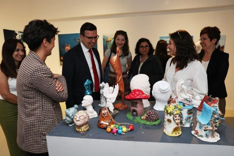 Sergide, 233 öğrencinin farklı sanat dallarındaki eserlerinin sergilendiğini belirten Şahin, bu organizasyonun oluşumunda emeği geçenlere teşekkür etti. Konuşmanın ardından Şahin, Kaat-ı ve Ebru Atölyesi Eğitmeni Dilek Erim, Resim ve Mozaik Atölyeleri Eğitmeni Lütfü Kuzu, Seramik Atölyesi Eğitmeni Selin Aslan, Heykel Atölyesi Eğitmeni Şeyma Çobanoğlu, Resim Atölyesi Eğitmenleri Harun Arı, Lale Aghayeva Ürek, Sabriye Düvenci ve Zekiye Doğan’a teşekkür belgesi verdi.