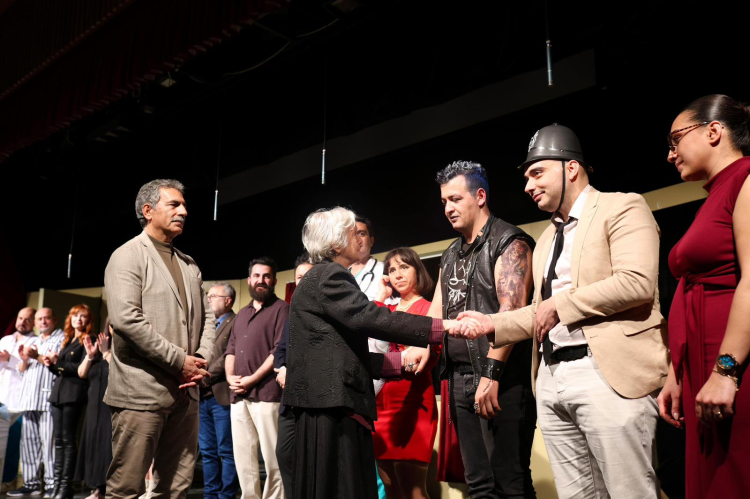 Gösterinin ardından Gemlik Belediye Başkanı Şükrü Deviren ve Bursa Barosu Başkanı Metin Öztosun tarafından, Yırtık Cübbe Tiyatro Topluluğu sorumlusu Leylanur Kaymakçı ile Özgür Aksoy’un annesi Gülay Aksoy’a çiçek takdim edildi.