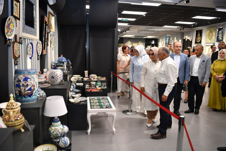 Törenin sonunda kurdele kesimiyle birlikte sergi ziyarete açıldı. Başkan Büyükkılıç, eserleri tek tek inceleyerek kursiyerlerden ve eğitmenlerden bilgi aldı.