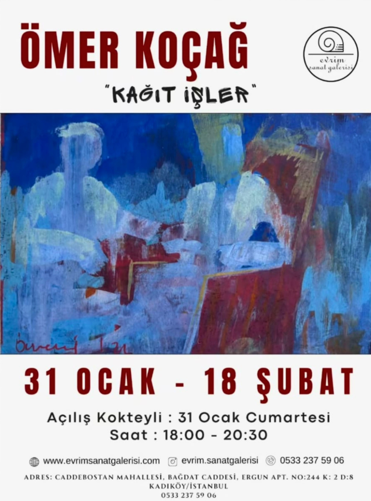 Sanatseverler, Ömer Koçağ’ın yeni dönem üretimlerini bir arada görme fırsatı sunan “Kağıt İşler” sergisini, 18 Şubat 2026 tarihine kadar Evrim Sanat Galerisi’nde ziyaret edebilirler.