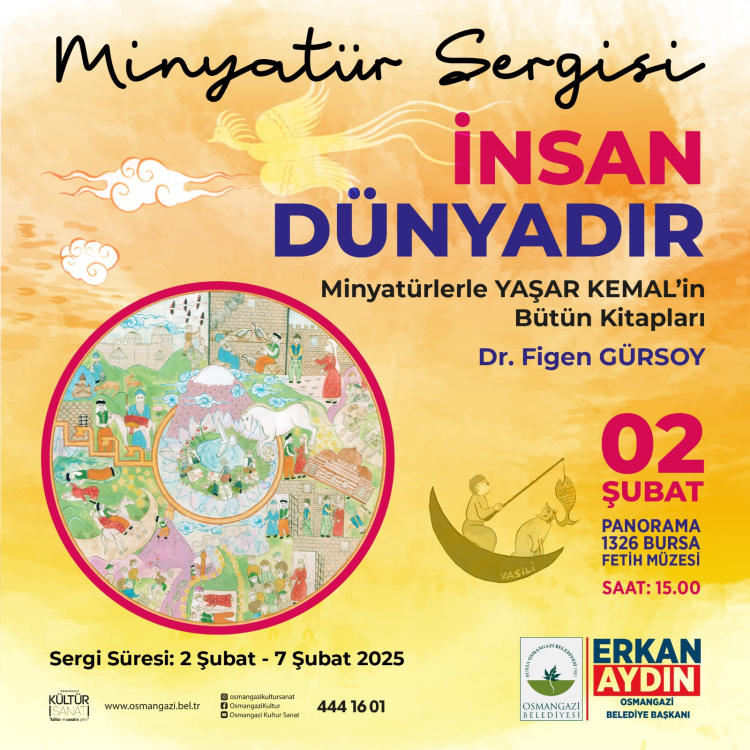 Osmangazi Belediyesi’nin ev sahipliği yaptığı ‘İnsan Dünyadır Minyatürlerle Yaşar Kemal’in Bütün Kitapları’ adlı minyatür sergisi, 02 Şubat Pazar günü sanatseverlerin ziyaretine açılıyor.