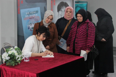 Yazar Ayşen Işık söyleşi sonunda ‘Ne yeni ne başka’ adlı kitabını etkinliğe katılan kadınlara imzaladı.