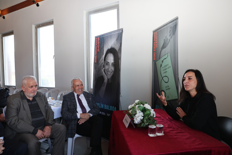 Yazar Aylin Balboa, “Nilüfer’de Kadın Hayata Yakın” etkinliğinde kırsal mahallelerdeki kadınlarla buluştu. Nilüfer Belediye Başkanı Şadi Özdemir’in de katıldığı etkinlikte Balboa, “Bu Hikaye Senden Uzun Osman” isimli kitabının hikayesini ve yazarlık serüvenini anlattı.