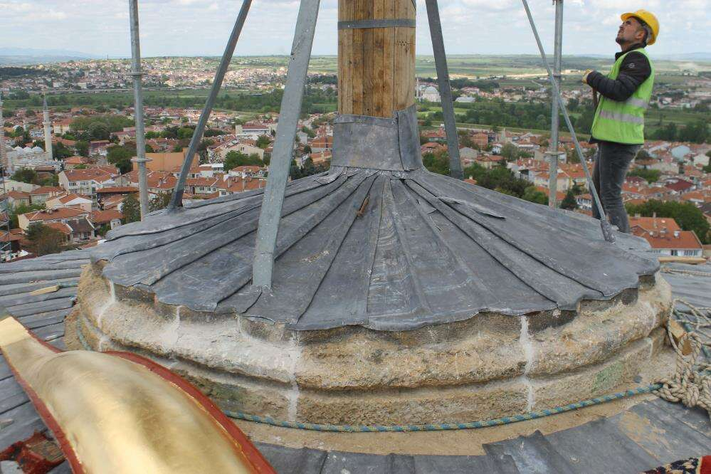 Mimar Sinan'ın "ustalık eserim" dediği Selimiye Camii'nin restorasyon çalışmalarında sona yaklaşıldı. Kurşun kaplaması yapılan ana kubbenin aleminin montajına başlandı.