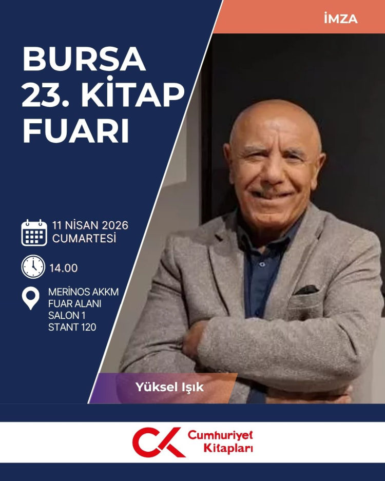 Güncel siyasal gelişmelere ilişkin serbest yazılarıyla da tanınan Işık, Kitap Fuarının davetlisi olarak Bursa’ya geliyor. 18 Nisan Cumartesi günü, saat 14.00’den itibaren kitaplarını imzalayacak olan Işık’ın imza programı, Merinos AKM Fuar Alanı Cumhuriyet Kitapları Standında gerçekleşecek.