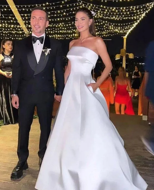 Demet Özdemir ile Oğuzhan Koç sonunda muradına erdi. Ünlü çift geçtiğiniz akşam birlikteliklerini evlilikle taçlandırdı. Davetlilerin şıklık yarışı gözlerden kaçmazken Demet Özdemir'in gelinliği sosyal medyada olay oldu. Güzel oyuncunun gelinliği "halı kaydırmaz" ürününe benzetildi.