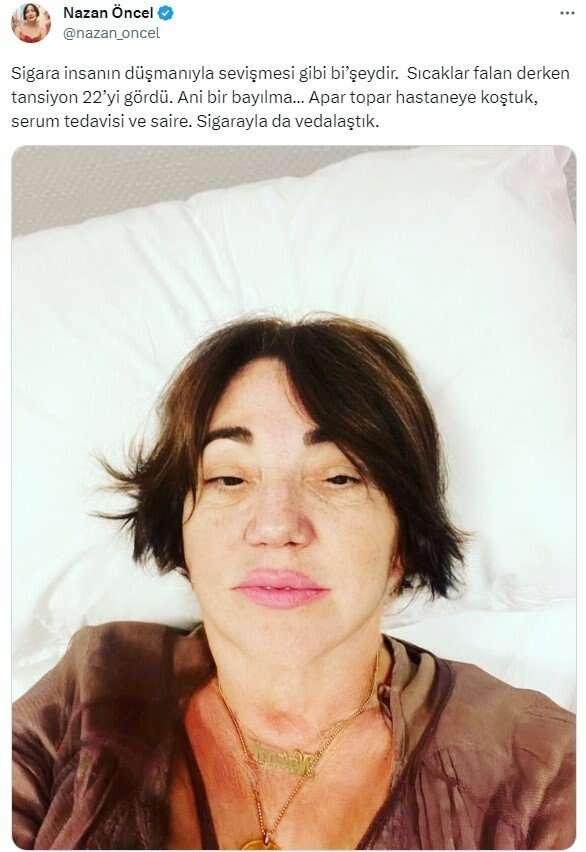 Ünlü şarkıcı Nazan Öncel sosyal medya hesabından yaptığı paylaşımla hastaneye kaldırıldığını duyurdu.