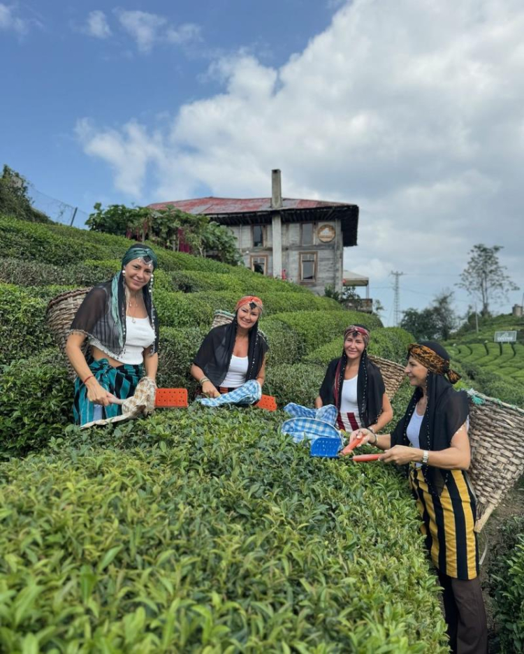 Ünlü oyuncu, sunucu ve manken Pınar Altuğ Atacan, Rize'de çay bahçesine girerek çay topladı.