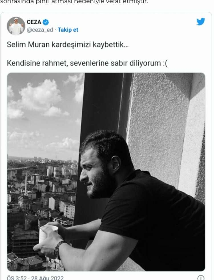 Ünlü rapçi Ceza kendi Twitter hesabından rapçi Selim Muran'ın vefat haberini paylaştı. Bunun ardından Selim Muran neden vefat etti, hastalığı neydi? merak edildi. Peki, Selim Muran kimdir, kaç yaşında vefat etti? Detaylar sizlerle...