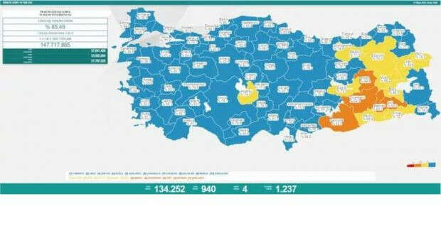 Buna göre Türkiye'de son 24 saatte 940 kişinin testi pozitif çıktı, 4 kişi ise hayatını kaybetti.