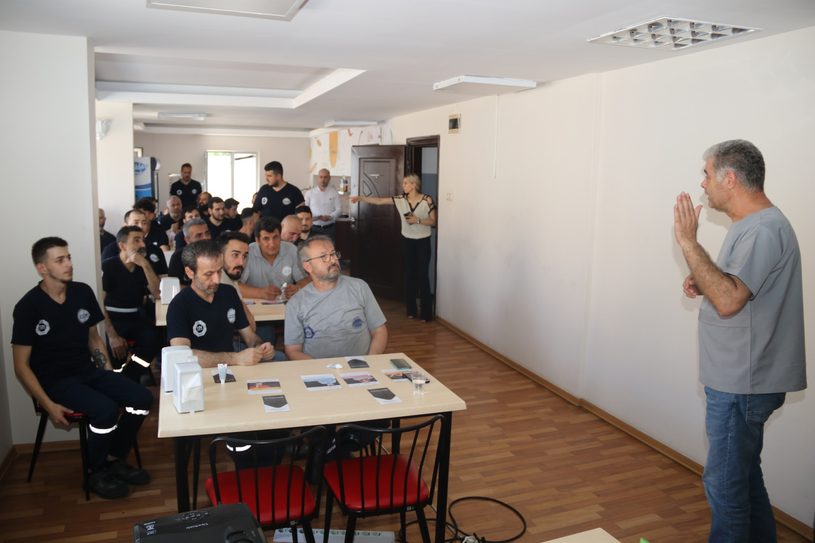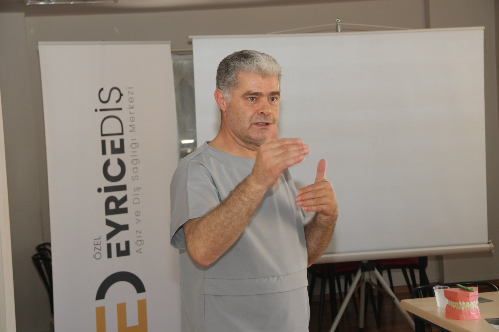Özel Eyrice Ağız ve Diş Sağlığı Merkezi’nin Diş Hekimi Mehmet Genç, Çalı Sanayi Bölgesi’nde hizmet veren Parladı Metal çalışanlarına ağız ve diş sağlığı, çeşitli rahatsızlıklardan korunma yolları gibi konular hakkında bilgiler verdi. Eğitim programı öncesinde bir açılış konuşması yapan Eyrice Ağız ve Diş Sağlığı Merkezi İdari İşler Müdürü Bünyamin KILIÇ, katılımcılara teşekkür ederek, her platformda insanları ağız ve diş sağlığını korumanın önemi, ağız ve diş sağlığının vücuda etkileri gibi konularda bilgilendirdiklerini söyledi.