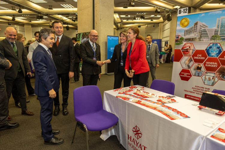 Fuara, Hayat Hastanesi adına Hastane Müdürü Nurten Molla ile Uluslararası Hasta Hizmetleri Müdürü Yasemin Gilaner Acın katıldı. Etkinlik süresince İngiltere’den ve farklı ülkelerden gelen çok sayıda hasta ve firma temsilcisiyle birebir görüşmeler gerçekleştirildi; Hayat Hastanesi’nin hasta odaklı hizmet anlayışı, uzman hekim kadrosu ve modern tedavi olanakları uluslararası katılımcılara tanıtıldı.