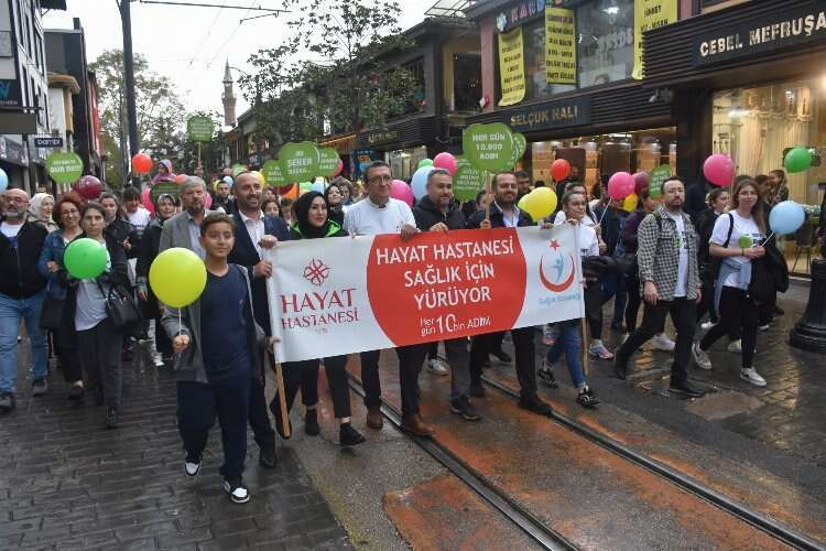 Bursa Hayat Hastanesi, 14 Kasım Dünya Diyabet Günü'nün önemine, diyabetin zararlarına dikkat çekmek ve farkındalık oluşturmak için sağlık çalışanları ile halkın katılımıyla yürüyüş organize etti.