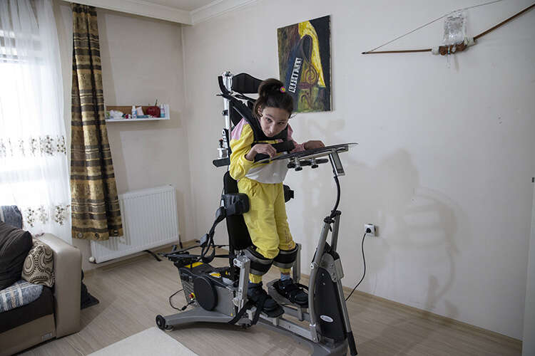 Yaren'in her gün belli egzersizleri yapması gerektiğini belirten Coşkun, "Adıyaman'da bu cihaz için çok çaba göstermiştik. Cumhurbaşkanı'mız bize destek olmuştu ama cihaz depremde enkaz altında kaldı. Depremin ardından Ankara'ya geldik ve geçici olarak otele yerleştik. Yaren uzun bir süre hareketsiz kaldığı için vücudunda yaralar açıldı." diye konuştu.