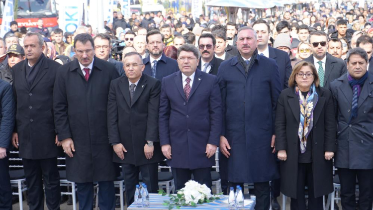 Törende konuşan Bakan Tunç, "Bu felaket, dünya tarihinin en büyük afetlerinden biri olarak kayıtlara geçti. Ancak millet olarak da büyük bir dayanışma örneği sergiledik. 81 ilimiz, tüm ilçeleri ve köyleriyle birlikte adeta bir seferberlik ilan etti. Devletimiz, Cumhurbaşkanımızın liderliğinde tüm kurumlarıyla hızla harekete geçti. Çok zor şartlar vardı, hava koşulları kötüydü, yollar kapanmıştı. Karla mücadele içinde enkaz altındaki canlara ulaşmak için insanüstü bir çaba gösterildi. Deprem sırasında bölgeye geldik. O zaman milletvekiliydim ve Hatay'dan itibaren girerken felaketin büyüklüğünü bizzat gördüm. Ancak asıl acıyı, enkaz altında saatlerce kalanlar ve yakınlarını kaybedenler yaşadı. Arama kurtarma ekiplerimiz, madencilerimiz ve AFAD'ın koordinasyonunda tüm birimlerimiz büyük bir mücadele verdi. Milletçe kenetlenerek tüm dünyaya örnek olacak bir birliktelik sergiledik" dedi.