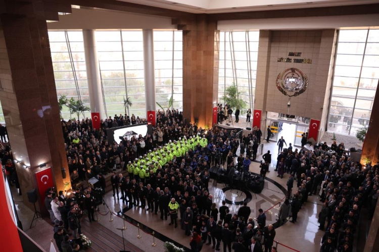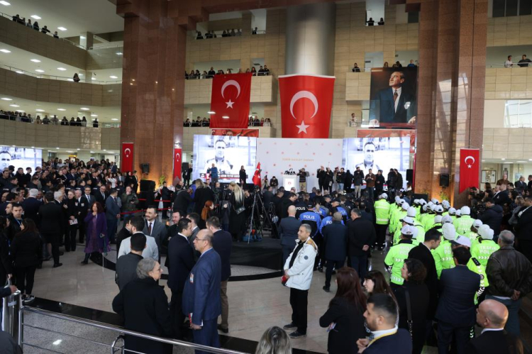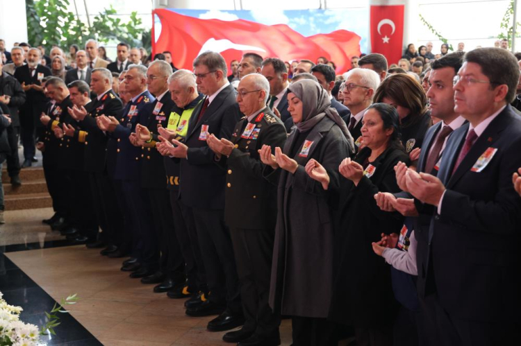 Törende konuşan Adalet Bakanı Yılmaz Tunç, “Kahraman polis memurumuzu ve adalet teşkilatımızın kıymetli mensubunu bizden koparan bu menfur terör saldırısını gerçekleştirenleri bir kez daha nefretle telin ediyorum. Şehitlerimizin ailelerine, sevenlerine, emniyet ve yargı teşkilatımıza, aziz milletimize başsağlığı diliyorum. Şehitlerimiz, Rabbimiz katında çok yüksek bir mertebeye ulaştılar. Gönüllerimizde çok müstesna bir yer edindiler. Millet olarak onların emanetine sahip çıkmanın gayretinde olacağız. Onların adlarını ve aziz hatıralarını hiçbir zaman unutmayacağız” dedi.