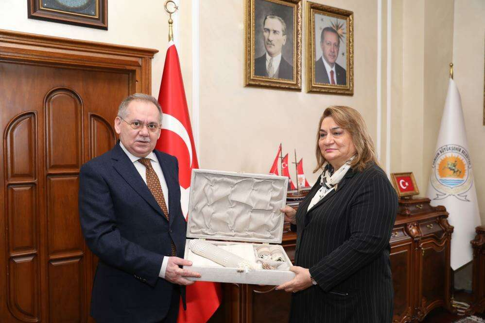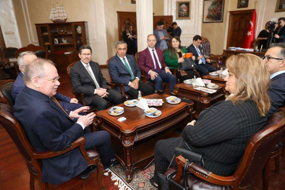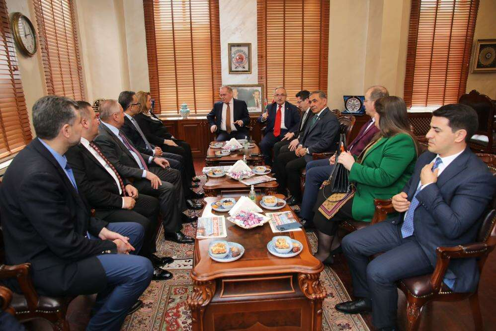 Samsun’a gelen Yeni Azerbaycan Partisi heyeti, Büyükşehir Belediyesi’ni ziyaret etti. Azerbaycan Parlamentosu Komisyon Başkanı Hicran Hüseynova, Yeni Azerbaycan Partisi Milletvekilleri Ramin Mammadov, Nasib Mahamaliyev, İlham Mammadov ile parti teşkilatı üyeleri Samsun Büyükşehir Belediye Başkanı Mustafa Demir ile görüştü. AK Parti Samsun İl Başkanı Mehmet Köse ziyarette heyete eşlik etti. İki ülke dostluğuna ve ortak güce vurgu yapılan ziyaret yaklaşık 1 saat sürdü. Başkan Demir, ziyarette kentte gerçekleştirilen projelerle ilgili bilgi verdi.