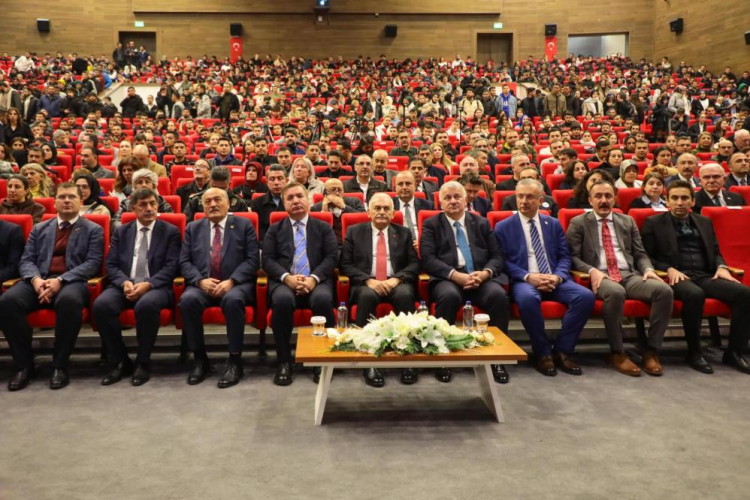 Erzincan Binali Yıldırım Üniversitesi (EBYÜ) Prof. Dr. Erdoğan Büyükkasap Kongre ve Kültür Merkezi Salonu'nda '5 Uçaktan 6 Kıtaya' konulu konferans gerçekleştirildi. Burada konuşan Türk Devletleri Teşkilatı Aksakallar Konseyi Başkanı Binali Yıldırım, THY'yi halka arz ettirmekle devletin mevzuatından şirketi kurtardıklarını ve millete mal ettirdiklerini söyledi.