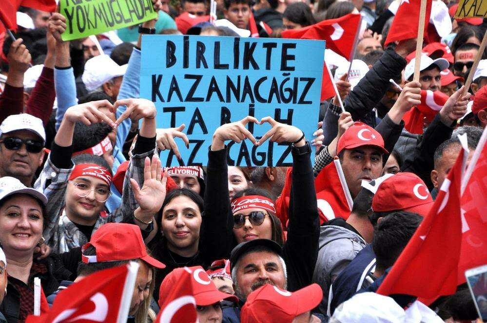 Millet İttifakı Cumhurbaşkanı adayı Kemal Kılıçdaroğlu Muğla’da millet buluşmasında halka seslendi. Kılıçdaroğlu konuşmasında gençlere, ev hanımlarına, çiftçiye seslenirken, "Bizim iki kırmızı çizgimiz var. Vatan ve bayrak. Nokta." dedi.
