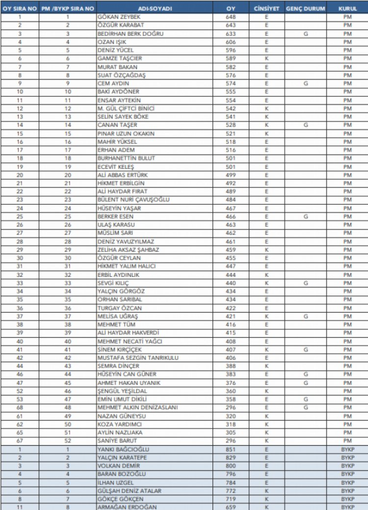 CHP Genel Başkanı Özgür Özel'in oluşturduğu listede olmayan Müslim Sarı, Deniz Yavuzyılmaz, Oğuz Kaan Salıcı, Ali Haydar Hakverdi ve Orhan Sarıbal listeyi delerek delegelerden aldıkları oylarla CHP PM listesine girdi.