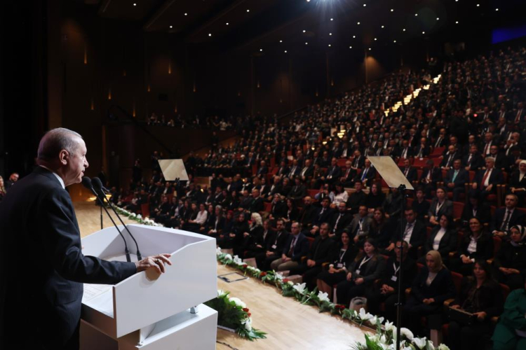 Küresel krizlerin ve kendi dinamiklerdeki kimi kırılmaların etkisiyle bir süredir yaşanan ekonomik sıkıntıların birilerinin iştahını kabarttığını gördüklerini ve bildiklerini söyleyen Erdoğan, “ Hemen şöyle tabloya bakıyorum. Gazinin şu ifadesi. ‘Arkadaşlar bundan sonra pek mühim zaferlere kavuşacağız. Fakat bu zafer süngü zaferleri değil, iktisat ve ilim ve irfan zaferleri olacaktır.' Şu anda yaşadığımız budur. Küresel krizlerin ve kendi dinamiklerimizdeki kimi kırılmaların etkisiyle bir süredir yaşadığımız ekonomik sıkıntıların birilerinin iştahını kabarttığını görüyoruz ve biliyoruz. Hiç heveslenmesinler. Aldığımız tedbirler ve başarıyla uyguladığımız program sayesinde önümüzdeki yıllarda bu sıkıntıyı da geride bırakarak bir sınamadan daha alnımızın akıyla çıkacağımızdan kimsenin şüphesi olmasın” ifadelerini kullandı.