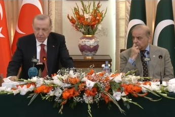 Cumhurbaşkanı Recep Tayyip Erdoğan, resmi temaslarda bulunmak üzere ziyaret ettiği Pakistan'ın başkenti İslamabad'da Pakistan Başbakanı Şahbaz Şerif ile baş başa, heyetler arası görüşmeler ve anlaşmaların imza töreninin ardından ortak basın toplantısı düzenledi. Konuşmasında ikinci evi olarak gördüğü Pakistan'ı ziyaret etmekten bahtiyarlık duyduğunu söyleyen Cumhurbaşkanı Erdoğan, Türkiye ve Pakistan'ın kadim ve sarsılmaz kardeşlik hukukuyla birbirine bağlı iki büyük ülke olduğunu belirtti. Erdoğan, "Bu topraklarda yaşayan Müslümanların Çanakkale ve İstiklal Harbimize verdiği destek, Pakistan'ın kurucuları Kaid-i Azam Muhammed Ali Cinnah ve Allame Muhammed İkbal'in Cumhuriyetimizden ilham almaları müstesna ilişkilerimizin en çarpıcı örnekleridir" dedi.