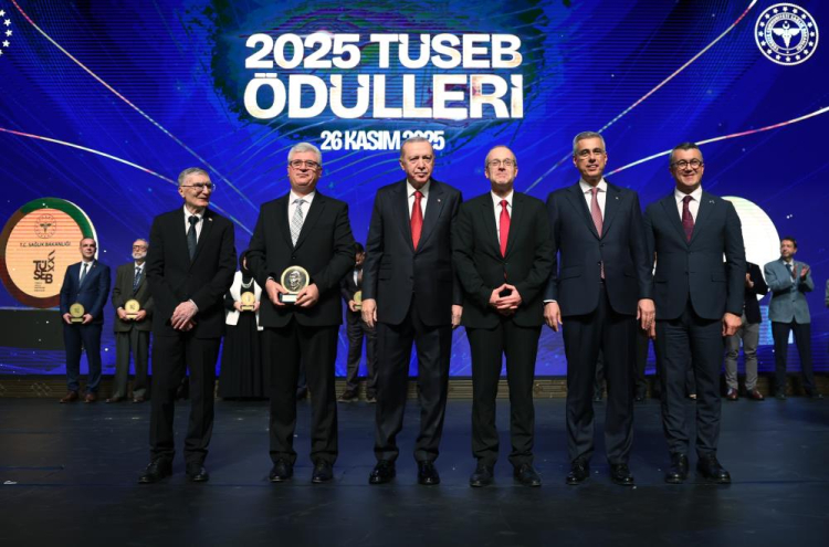 Cumhurbaşkanı Recep Tayyip Erdoğan'ın takdim ettiği 2025 TÜSEB Ödülleri, sağlık ve bilim dünyasında önemli isimleri onurlandırdı. TÜSEB Teşvik Ödülü, bu yıl Prof. Dr. Suat Tekin, Prof. Dr. Sercan Karav, Doç. Dr. Beyza Servet Göncü ve Prof. Dr. Erkan Yılmaz’a verildi. TÜSEB Hizmet Ödülü'nün sahibi ise Prof. Dr. Mehmet Erdem Büyükbingöl oldu. 2025 TÜSEB Sağlık Teknolojileri Prestij Ödülü, Şahin Gürsel’e takdim edilirken, dünyaca ünlü beyin ve sinir cerrahı Ordinaryüs Prof. Dr. Gazi Yaşargil anısına hazırlanan TÜSEB Özel Ödülü bu yıl Prof. Dr. Uğur Türe’ye verildi. İnovatif Sağlık Ekibi Ödülü'ne çalışmalarıyla öne çıkan Prof. Dr. Serkan Topaloğlu ve ekibi layık görüldü. Bu yılın Aziz Sancar Bilim Ödülü ise Prof. Dr. Fikrettin Şahin’in oldu. Ayrıca Cumhurbaşkanı Erdoğan’a Gazze’deki insani girişimleri nedeniyle Dünya Sağlık Örgütü Avrupa Özel Ödülü takdim edildi.