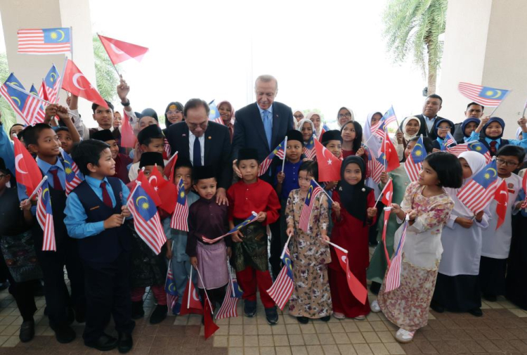 Cumhurbaşkanı Recep Tayyip Erdoğan, resmi ziyaret düzenlediği Malezya’da temaslarını sürdürüyor. Cumhurbaşkanı Erdoğan Malezya Başbakanı Enver İbrahim’e TOGG aracı teslim etti. aracın teslim töreninde Malezya’ya özgü halk dansları gösterisi yapılırken Malezya ve Türkiye bayrakları taşıyan Malezyalı çocuklar Cumhurbaşkanı Erdoğan’a büyük ilgi gösterdi. Cumhurbaşkanı Erdoğan ve Malezya Başbakanı İbrahim, çocuklarla hatıra fotoğrafı çektirdi.