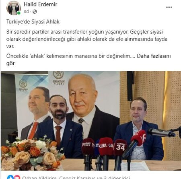 Yeniden Refah Partisi MKYK Üyesi Avrupa Koordinatörü Halid Erdemir sosyal medya hesabında yaptığı açıklamayla son günlerde yaşanan siyasi parti transferleri hakkında bir açıklama yayınladı.