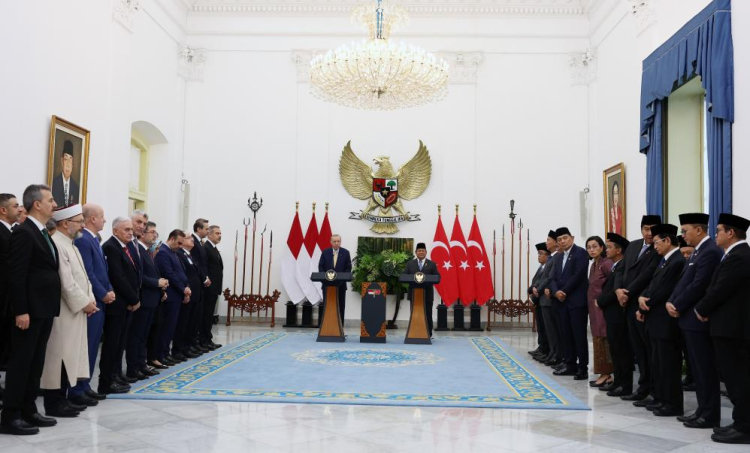 Cumhurbaşkanı Recep Tayyip Erdoğan, Malezya ziyaretinin ardından geldiği Endonezya’da temaslarını sürdürüyor. Cumhurbaşkanı Erdoğan, Endonezya ve Türkiye arasında çeşitli alanlarda anlaşmaların imzalanması töreninin ardından Endonezya Devlet Başkanı Prabowo Subianto ile ortak basın toplantısı düzenledi. Konuşmasına Endonezya’yı G-20 Liderler Zirvesi vesilesiyle 2022’de ziyaret ettiğini ifade ederek başlayan Cumhurbaşkanı Erdoğan, "Bugün de Yüksek Düzeyli İşbirliği Konseyi Birinci Toplantısı vesilesiyle buradayız. Bu sene diplomatik ilişkilerimizin tesisinin 75. yıl dönümünü idrak ediyoruz. Ancak Endonezya ile tarihi ve beşeri bağlarımız 400 yıl öncesine kadar uzanıyor. Bu güçlü yakınlıktan ilham alan ilişkilerimizi 2011 yılında ilan ettiğimiz stratejik ortaklığımız ile taçlandırdık. Bugünkü konsey toplantımızda münasebetlerimizi daha da kurumsallaştırmış olduk" ifadelerini kullandı.